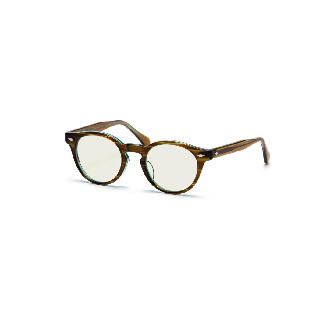 こちらはアメリカ製60年代の俳優が掛けていた眼鏡にインスパイアを受け、 鯖江産のアセテートを用いたクラシックなシルエットで仕立てられています。