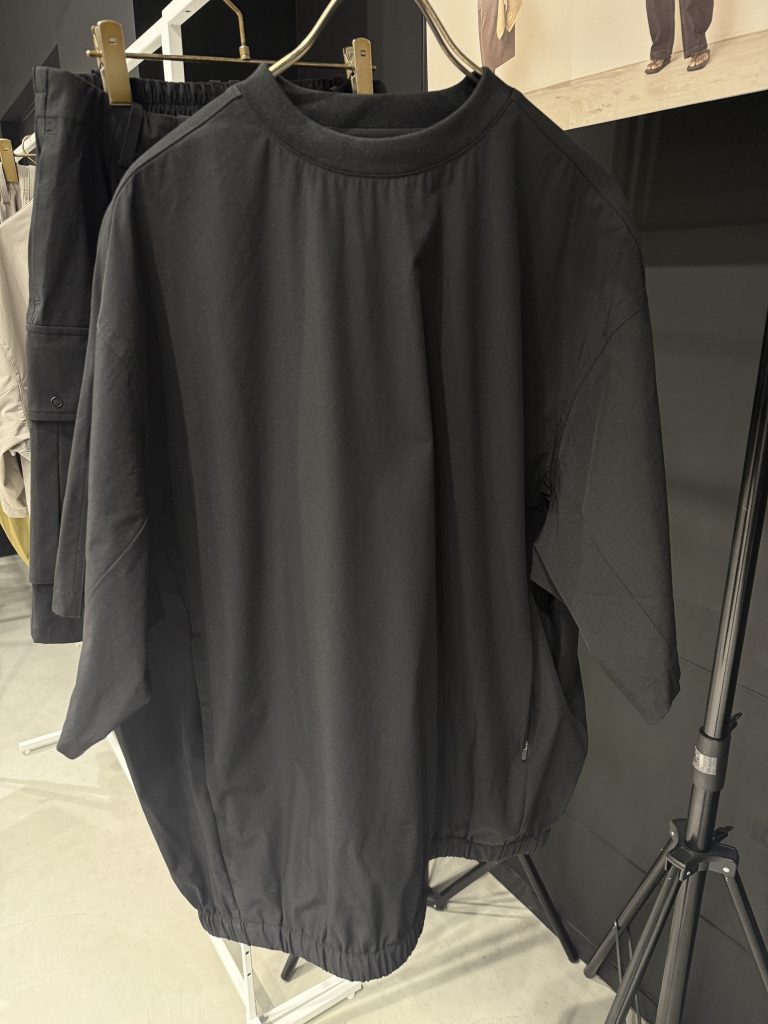 こういう異素材系も気分ですね。ちゃんと夏に着られる仕様で、同素材のパンツもあります。
