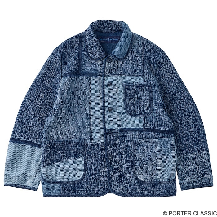 素材の刺し子柄が際立つ、ポータークラシックを象徴するジャケットです。ゆったりとしたシルエットでありながらも、立体感のある刺し子加工が上品な存在感を放ちます。長く着込んでいくほどに風合いが増す一着として、ワードローブにぜひ加えたいアイテム。