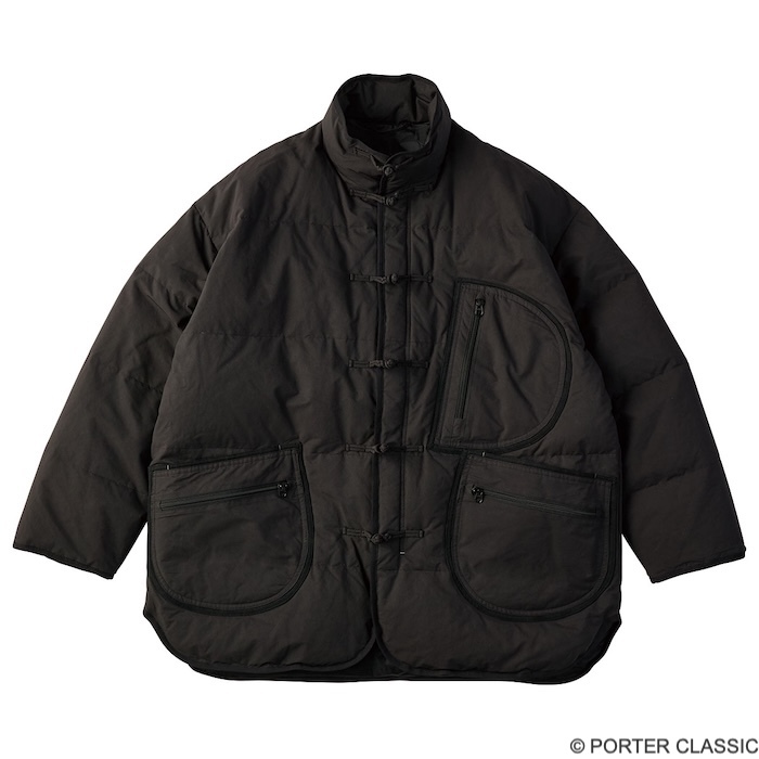 ワーク感とモダンさが融合した「CHINESE」シリーズ。中華服のディテールをヒントにしたカフスや前立てのデザインが特徴で、ポータークラシックならではの遊び心が光ります。セットアップでも単体でも、品良く仕上がる万能シリーズです。「CHINESE」シリーズは一過性ではなく、ポータークラシックがずっと作り続けている定番デザインのため安心して取り入れやすいです。
