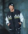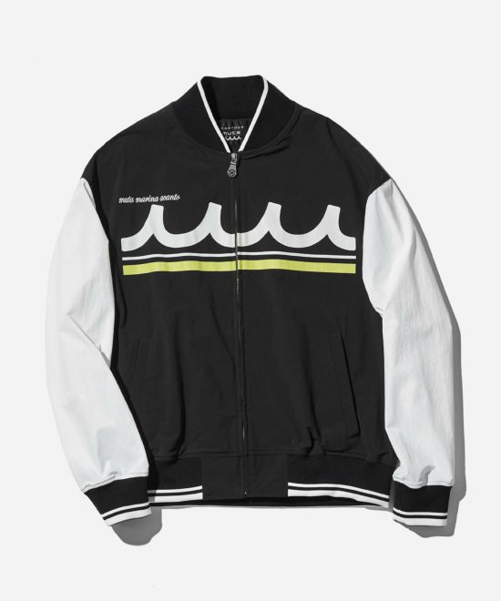 機能性に優れた素材を使用したMA-1ジャケット。好配色なライン入りリブと、大体に配置したシルクスクリーンによるコラボレーションプリントが特徴。裏無しの一枚仕立て、リラックスシルエットとストレッチ性に優れた生地で快適な着心地となっています。ファスナーにはmutaオリジナルのスライダーチャームを使用しています。