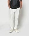 テーパードの美しいラインを描くイージータイトスラックス。フロントにはピンタックを施し、センタークリースを際立たせることでドレス感を演出。裾はクラシックなダブル仕立てとし、細部まで品格を備えています。ウエストはシャーリングリブとドローコードによりリラックスした着用が可能。左フロントポケット脇にはコラボレーションロゴを刺繍であしらい、さりげないアクセントを加えています。前開きはZIPPERフライを採用し、実用性も兼ね備えています。