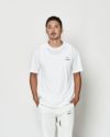 衣類内の空気の循環、湿った空気を換気してくれる切り替えを背中に配置したベンチレーションTシャツ。オーセンティックなベーシックシルエット。フロントにはオリジナル織りネーム、コラボレーションロゴ刺繍を施しています。