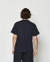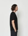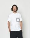 首フライスは2本針縫製、丸胴に編み立てた身頃を使用したベーシックなシルエットのTシャツ。左胸にはレーザーカットと特殊な圧着加工にて取り付けるPOLI-FLEXシートを用いて、夏らしいメッシュ生地を使用した無縫製ポケットを作成しています。