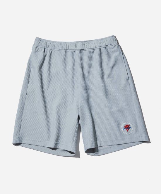 高機能ながら都会的な表情のメッシュ素材を使用したイージーショーツ。程よいリラックスシルエット。ウエストにはチューブチップ加工を施したドローコードを使用しています。ポケット袋布には吸水速乾性を持つメッシュ素材を使用し軽やかな着心地をキープしています。ロゴを組み合わせたコラボレーションデザインを刺繍にて施しています。