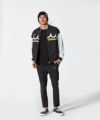 機能性に優れた素材を使用したMA-1ジャケット。好配色なライン入りリブと、大体に配置したシルクスクリーンによるコラボレーションプリントが特徴。裏無しの一枚仕立て、リラックスシルエットとストレッチ性に優れた生地で快適な着心地となっています。ファスナーにはmutaオリジナルのスライダーチャームを使用しています。