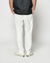 テーパードの美しいラインを描くイージータイトスラックス。フロントにはピンタックを施し、センタークリースを際立たせることでドレス感を演出。裾はクラシックなダブル仕立てとし、細部まで品格を備えています。ウエストはシャーリングリブとドローコードによりリラックスした着用が可能。左フロントポケット脇にはコラボレーションロゴを刺繍であしらい、さりげないアクセントを加えています。前開きはZIPPERフライを採用し、実用性も兼ね備えています。