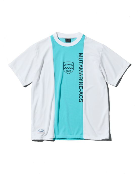 切り替えの配色に拘ったスポーティーなカットソートップ。程よいリラックスシルエット。フロントにはコラボレーションエンブレムロゴをシルクスクリーンにてプリント、オリジナル織りネームを配置しています。
