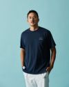 衣類内の空気の循環、湿った空気を換気してくれる切り替えを背中に配置したベンチレーションTシャツ。オーセンティックなベーシックシルエット。フロントにはオリジナル織りネーム、コラボレーションロゴ刺繍を施しています。