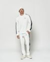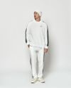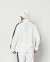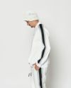 アームのサイドライン切り替えをアクセントにした、スポーティーな衿付スウェット。フロントにはコラボレーションロゴ刺繍、織りネームを配置しています。着用し易いベーシックなシルエットに仕上げています。同生地を使用したMA2608とのセットアップでの着用も可能です。