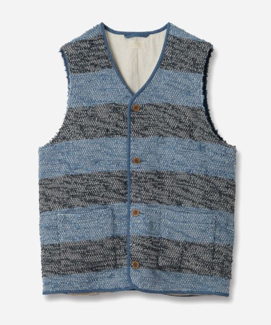 オリジナルのボーダー柄裂き織り素材を部分使いしています。