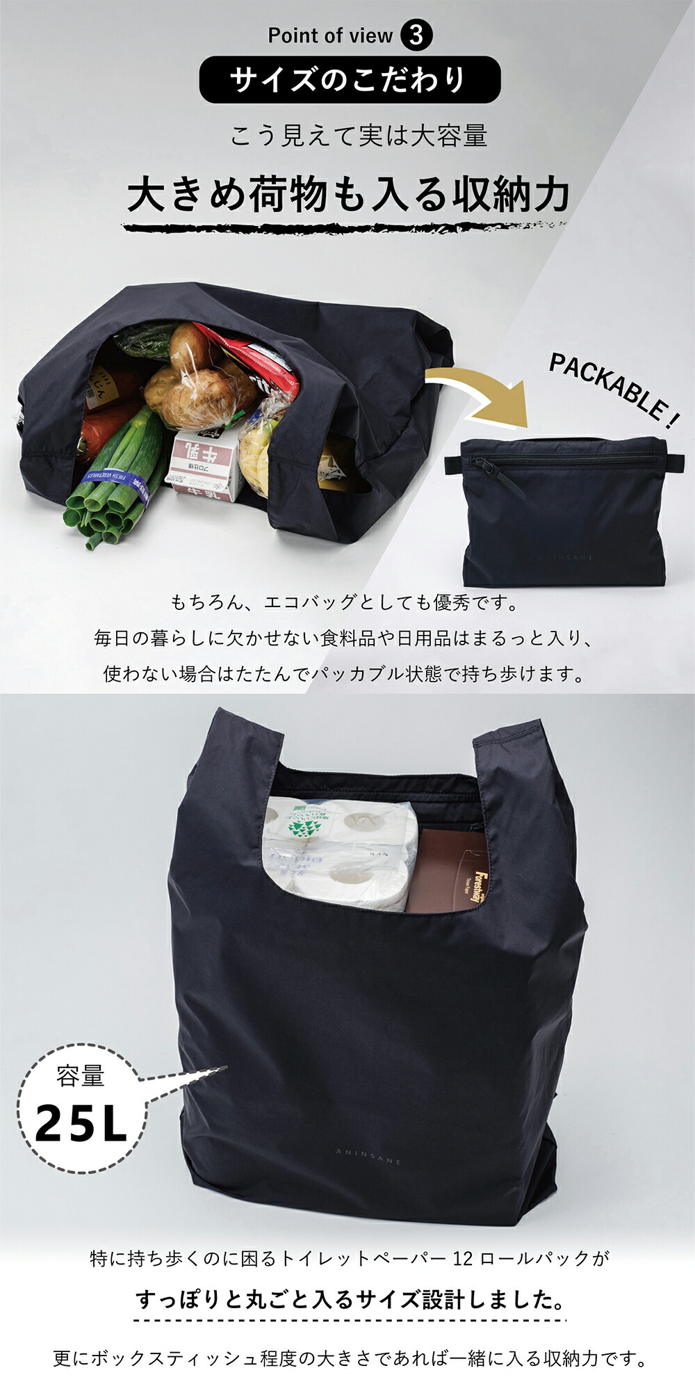 軽さ・収納力・快適さを備えた、 ただのエコバックでは終わらない一品。