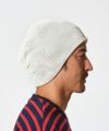 クオリティの高い国内工場にて編み立てたニットキャップ。メッシュ構造を採用した編み方が特徴で暑い時期でも快適な被り心地を実現しています。バックにはつまみを入れて、程よくルーズで立体感のある被り方が可能です。フロントにはコラボレーションデザインの織りロゴネームを配置しています。