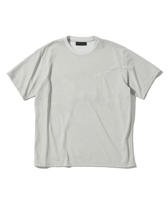 衣類内の空気の循環、湿った空気を換気してくれる切り替えを背中に配置したベンチレーションTシャツ。オーセンティックなベーシックシルエット。左胸には筆記体刺繍を施しています。