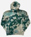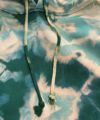 カーキをベースにを淡い緑色のタイダイ柄を入れたパイル生地のプルオーバーフーディー。